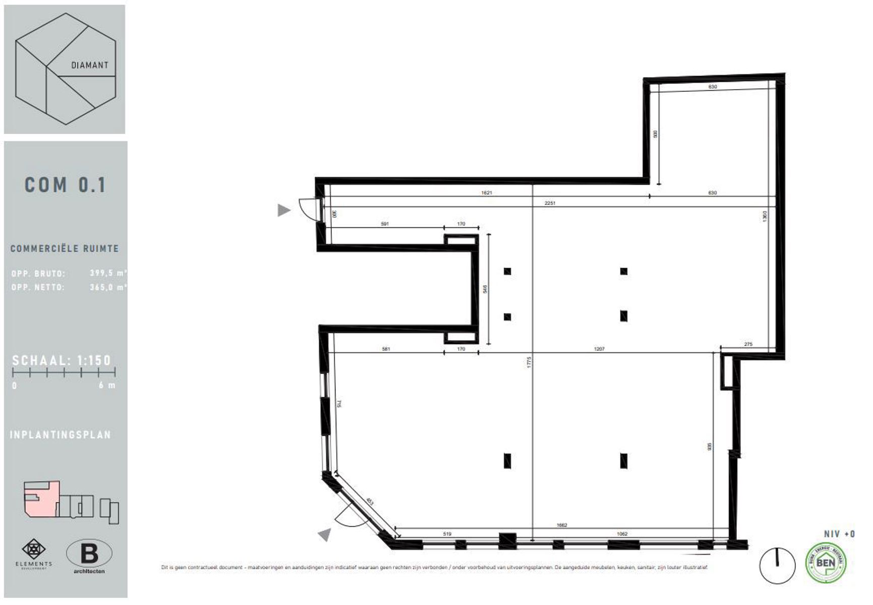 De commerciële ruimte bevindt zich in het nieuwbouwproject 'Diamant', bestaande uit 18 appartementen en 2 woningen.