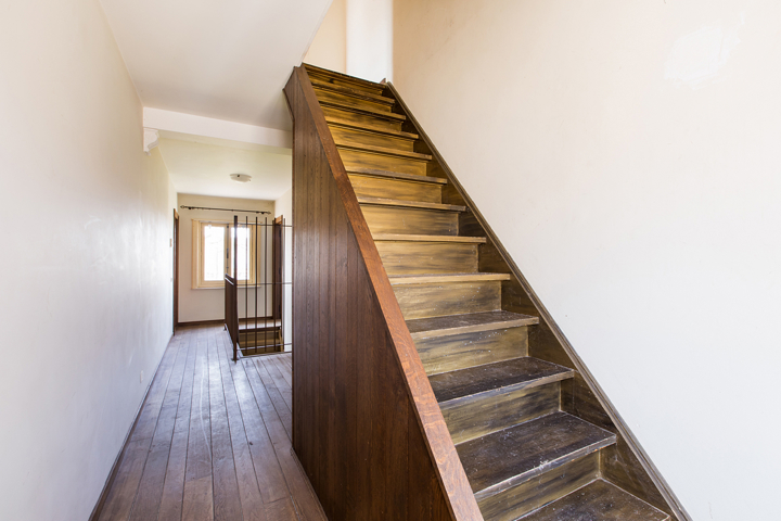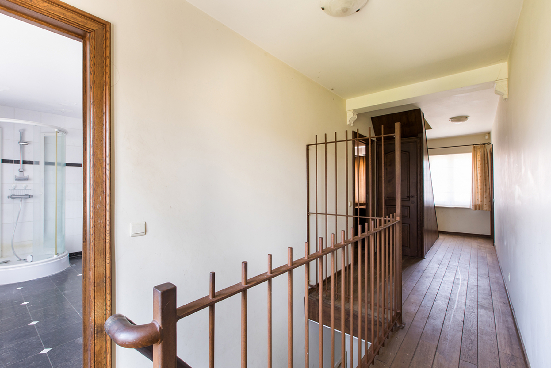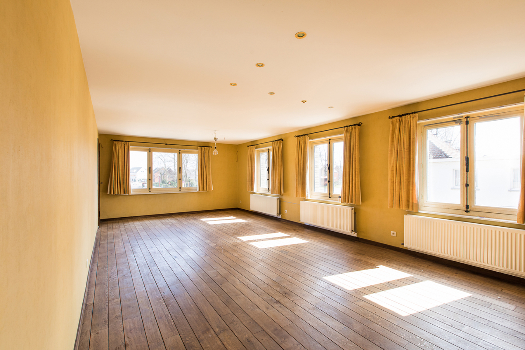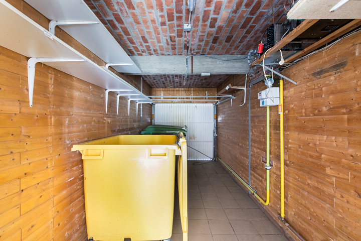 De eerste verdieping bestaat uit een grote vide met toegang tot zithoek en eetplaats van ca. 40 m². De master bedroom van ca. 16 m², (vide, leefkamer en master bedroom zijn ingelegd met eikenhouten parket) en de grote badkamer met douchecabine, toilet, lavabo en het hoekbad. De trap naar de 2de verdieping brengt ons naar 2 grote polyvalente kamers. Verder beschikt dit gebouw over een bergplaats en een binnenkoer met fietsstalling.