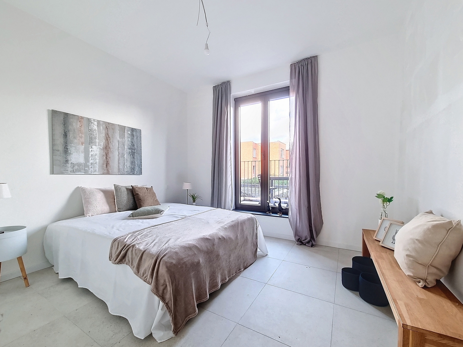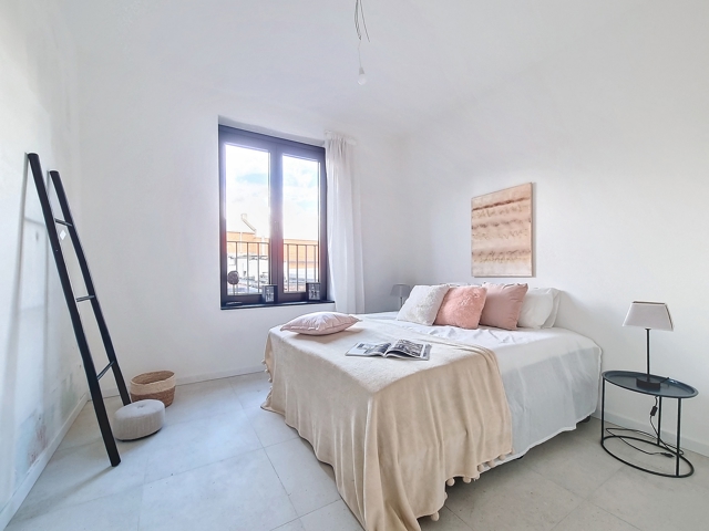 Aan de linkerzijde van het appartement bevinden zich de berging/wasruimte, badkamer en twee slaapkamers, waarvan één over een terras beschikt.