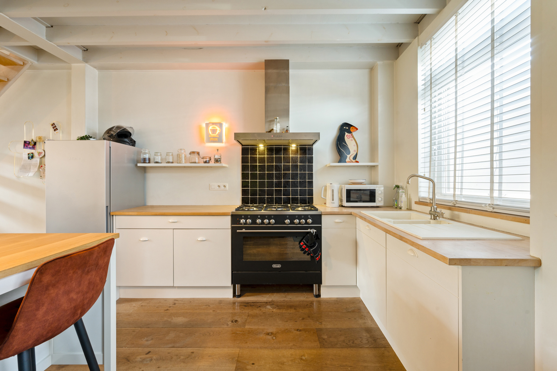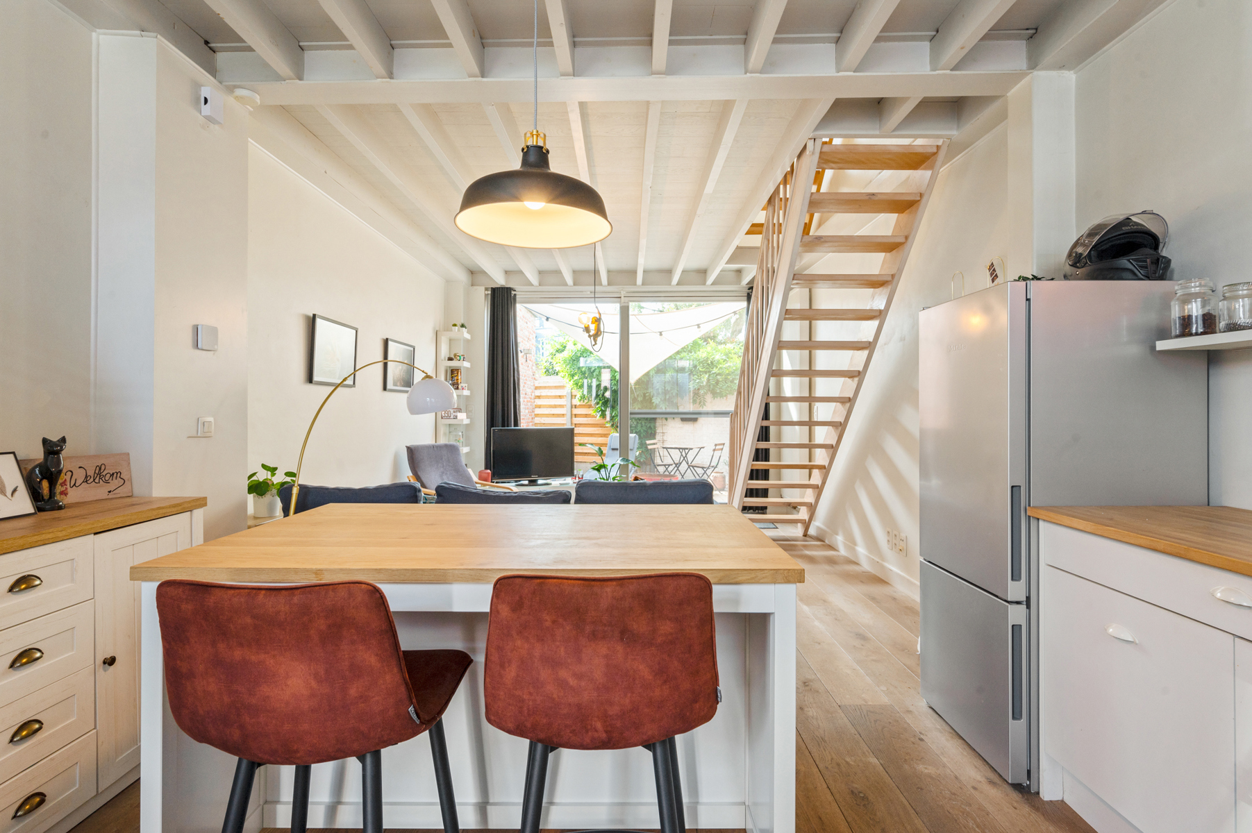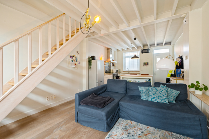 Bij het betreden van de woning via de open keuken komt u terecht in de leefruimte die plaats biedt aan zowel een eetgedeelte als een zitruimte. Een grote schuifdeur zorgt voor veel lichtinval en geeft toegang tot het zuidgerichte terras, dat tevens bereikbaar is via een servitudeweg.