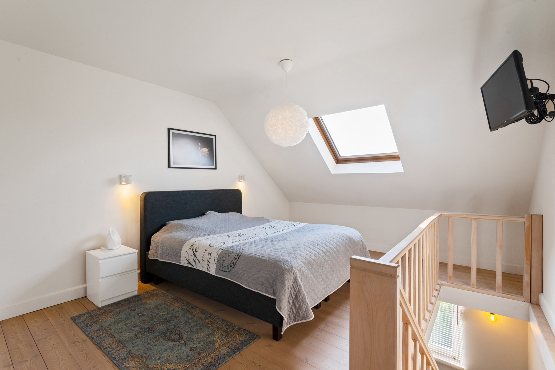 De tweede verdieping biedt ruimte aan twee slaapkamers, die flexibel ingericht kunnen worden als hoofdslaapkamer en logeerkamer, of als kinderkamer en bureauruimte.