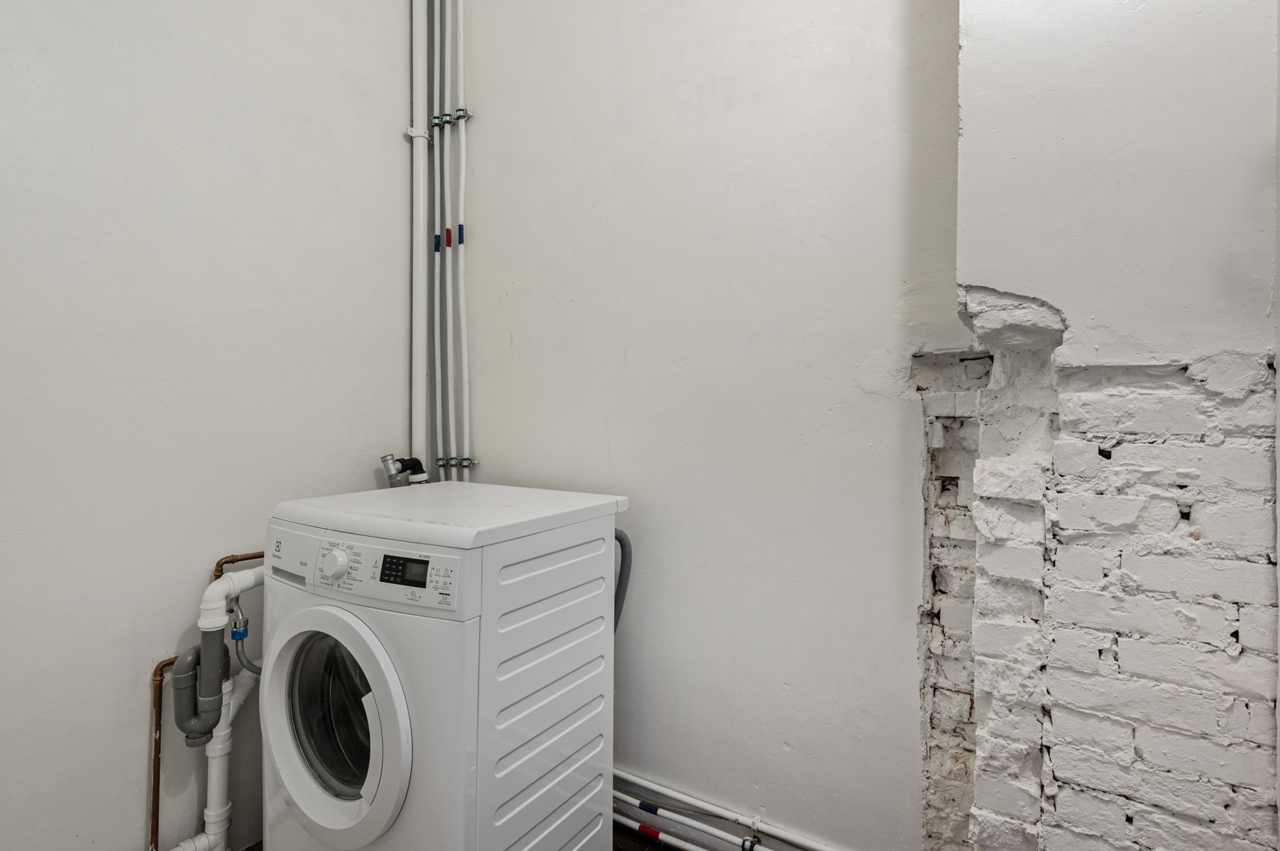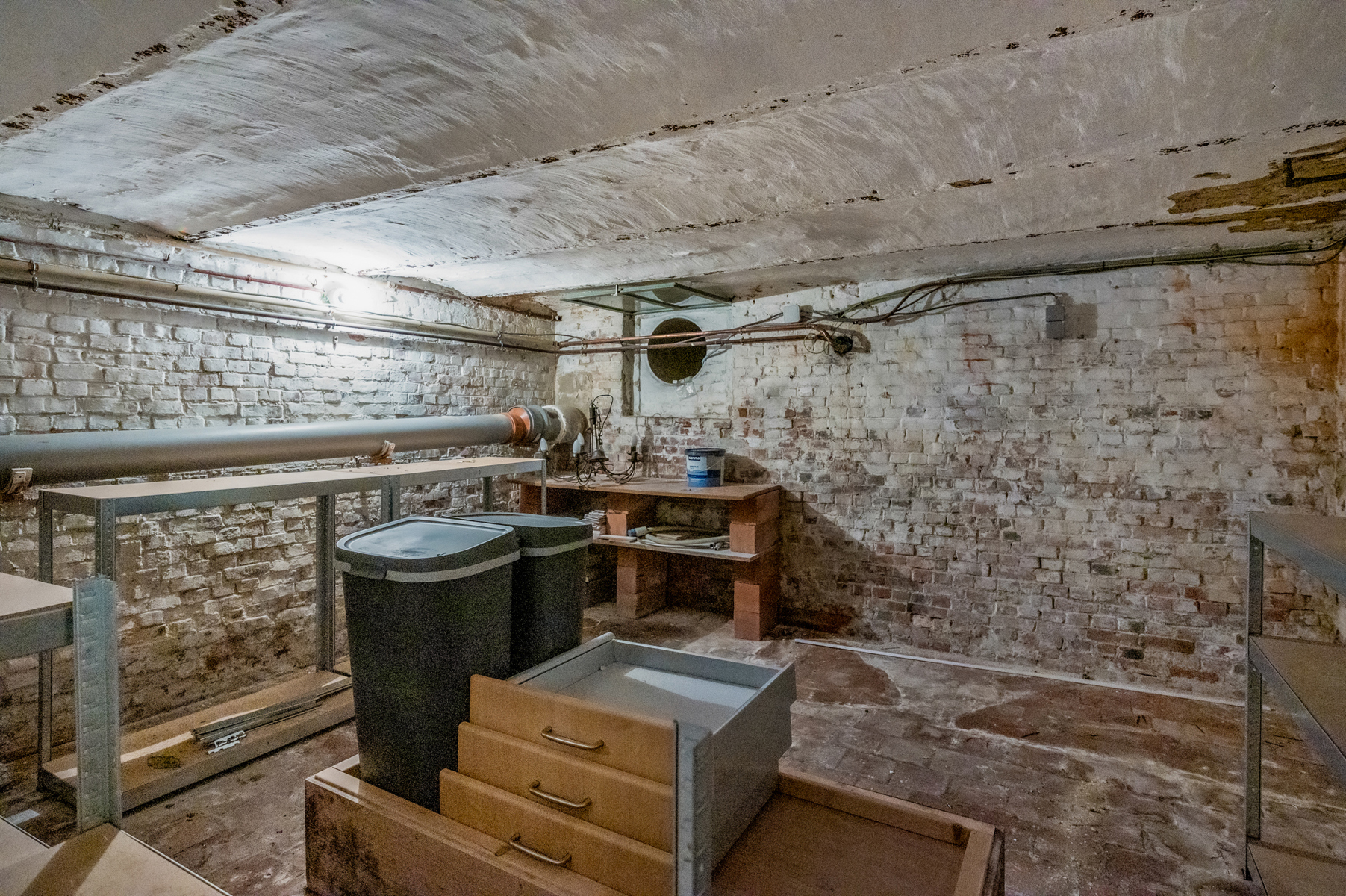 De kelder is toegankelijk vanuit de zithoek. Achteraan is er een tuin met bijgebouw; de tuin is eveneens bereikbaar via een aparte wegenis.