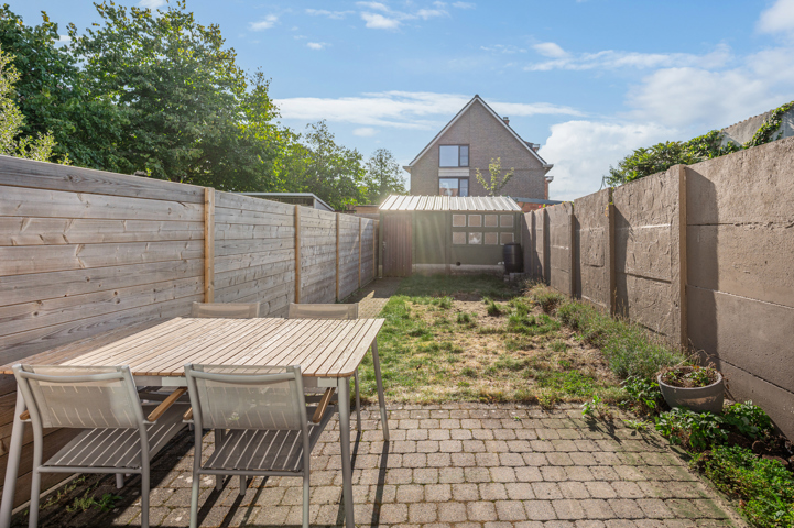 Deels gerenoveerde stadswoning met tuin, zijdelings toegankelijk via een wegenis.