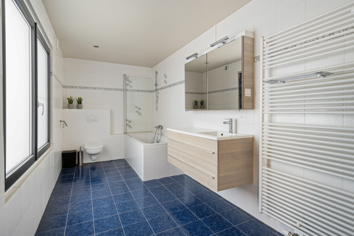 Op de eerste verdieping bevinden zich twee slaapkamers en een vernieuwde badkamer, uitgerust met ligbad, badkamermeubel en toilet. De derde slaapkamer bevindt zich op de tweede verdieping en is bereikbaar via de tweede slaapkamer.