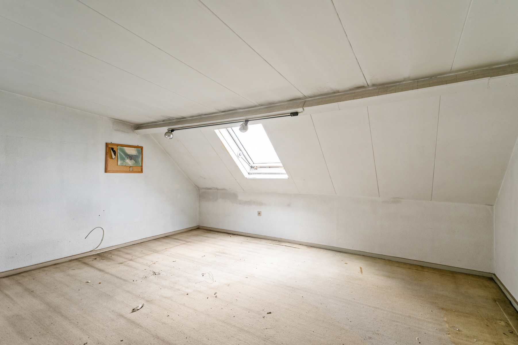 Inkomhal met de trap naar de bovenverdieping. Verderdoor de voorkamer, keuken, leefruimte en berging. Op de eerste verdieping bevinden zich de drie slaapkamers en badkamer. Via de vaste trap bereikt u de ruime zolder. Garagepoort aan de rechterzijde van de woning. Hierachter bevindt zich het ruime magazijn van ca. 380 m².