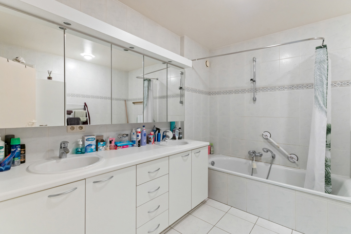 Via de inkomhal betreden we dit ruime appartement midden in het centrum van Herentals. Via het grote schuifraam in de woonkamer bereikt u het eerste terras. Verderdoor de keuken, uitgerust met boven- en onderkasten, spoelbak, kookplaat, dampkap en oven. Aansluitend de praktische berging. Achteraan het appartement bevinden zich de drie volwaardige slaapkamers, het gastentoilet en de badkamer voorzien van dubbele lavabo met meubel, spiegelkasten en ligbad. De masterbedroom biedt toegang tot het terras aan de achterzijde. Garage en kelderberging aanwezig in het ondergrondse complex.